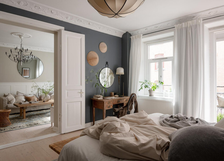 В этой шведской квартире каждая комната — особенная, а общее у них разве что только натуральный скандинавский декор. Так, гостиная здесь светлая и тёплая, интерьер оформлен в приятных бежевых тонах и с деталями из натурального дерева. С другой стороны, в спальной настроение задают тёмно-синие стены, но благодаря обилию естественного света пространство совсем не кажется камерным. Ну а в дизайне кухни своя фишка — это фрагмент оригинальной кирпичной стены в качестве основного декоративного акцента. Enjoy!