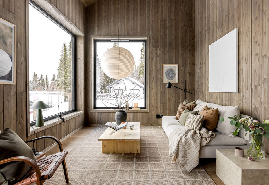 Эта квартира-дуплекс на севере Швеции — прекрасный пример современного жилья в стиле шале. Её расположение продиктовало дизайн интерьеров: вокруг на много километров виднеются горные вершины, лыжные трасы и тишина дикой природы. Все стены и потолки в комнатах отделаны тонированным дерево, имеется стильная чёрная кухня, но больше всего запоминается прекрасное пространство — благодаря двойной высоте потолков в доме много приятного дневного света. Ну и просто чудесные виды через большие окна!
