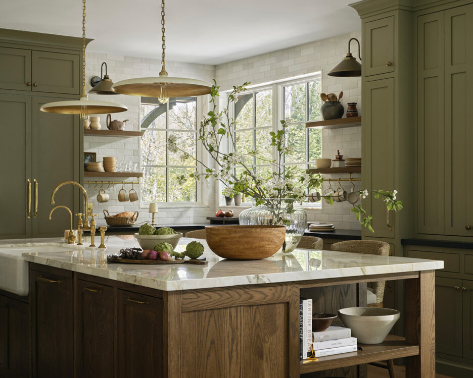 Интерьер этого коттеджа в Канаде пахнет свежестью и природой — дизайнеры сделали оттенки зелёного главной темой его оформления. Особенно красой получилась кухня: здесь красивый цвет кухонных шкафчиков и деревянные элементы прекрасно гармонирует с листвой и стволами деревьев за окном. В гостиной главным акцентом стал камин с кладкой из натурального камня, который добавляет ноток стиля рустик в интерьер. Прекрасное загородное жильё!