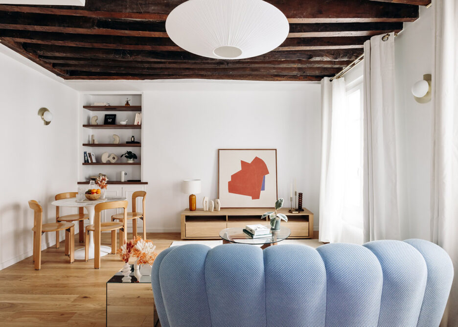 С одной стороны красивое и светлое современное пространство с чистыми линиями и деталями, с другой — потрескавшиеся от времени старинные деревянные балки на потолке. Эта небольшая квартира в историческом доме в Париже привлекает своими контрастами старого и нового. Дизайнер Elena Le Bihan вспоминает, что раньше это было тёмное и неудобное помещение, но теперь — яркое, хоть и компактное жильё с характером в центре всего самого интересного в городе. Enjoy!