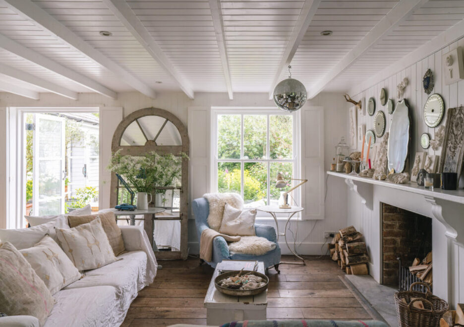 Белый снаружи и внутри, это чудесный деревянный коттедж в Англии буквально утопает в буйной зелени. Крашеное дерево здесь является главным материалов отделки как фасада, так и внутренних стен, в то время как интерьеры изобилуют винтажными предметами мебели и очаровательными деталями декора. Что касается стилистического направления, то в этом интерьере можно говорить об уютном миксе английского, французского и американского кантри стилей. Кроме всего прочего, очень хотелось бы выделить внутренний дворик с уличной мебелью и чудесным взаимодействием с живыми растениями. Красота!