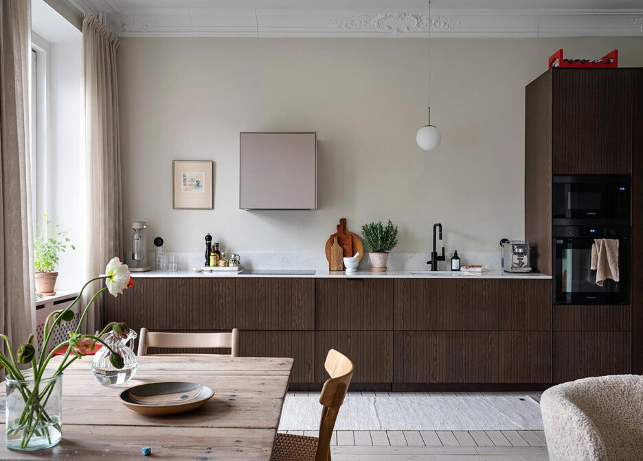 Каждый уголок этой шведской квартиры получился по-своему интересным. Кухня, например, выполнена в стильном минимализме с открытыми полками и оригинальными шкафчиками из темного дерева. В гостиной есть замечательный цветовой акцент — это старинная печь, которая здесь покрашена в нежно-голубой оттенок и выглядит очень мило. Зона с диваном оформлена в тёплых светлых оттенках, которые создают идеальную ауру для отдыха и общения. Ну а главная спальня — сама нежность и утончённость. Приятного просмотра!