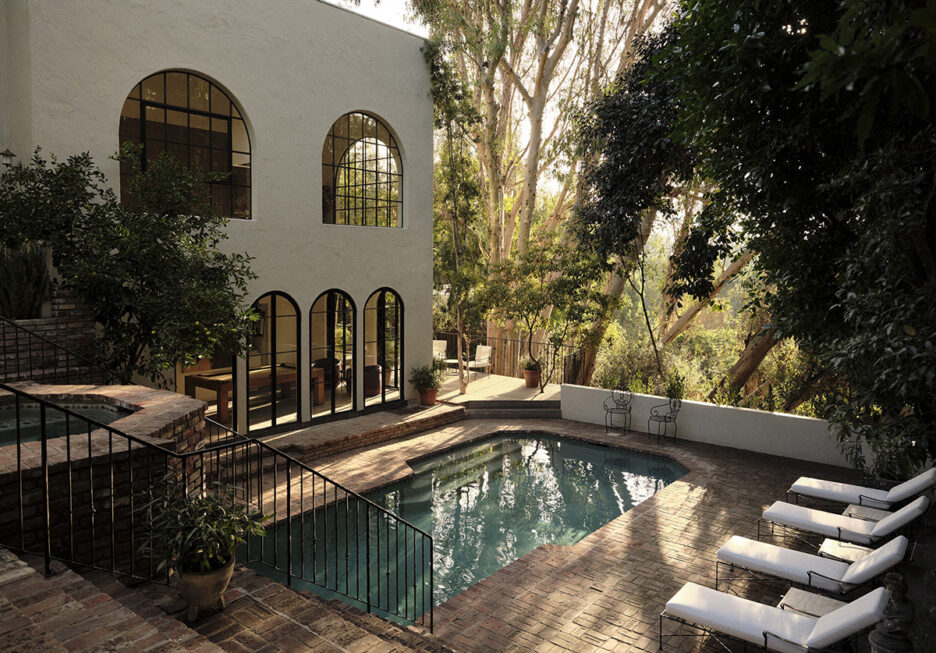Эта вилла в Лос-Анджелесе была построена в 1969 году, а её архитектура была вдохновлена испанским стилем. Великолепные арочные окна стали главной особенностью дома, не только наполнив его интерьеры дневным светом, но и придав интерьерам эффектных черт. Что касается оформления, до здесь мы видим элегантное сочетание деревенского стиля и расслабленного современного дизайна в нейтральных тонах. Райское местечко!