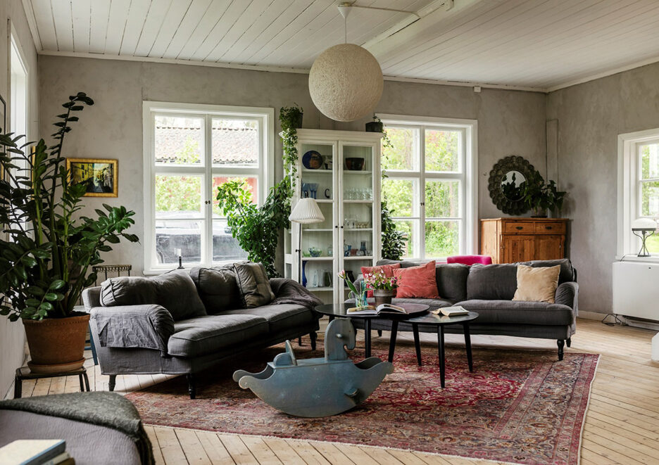 В просторной гостиной этой шведской дачи целых 5 больших окон, плюс высокие потолки и деревянные балки. Такой необычный набор характеристик для старого загородного дома недвузначно намекает на особенное прошлое дома — это бывшая сельская школа, построенная в  далёких 1860-годах. Но теперь у здания новая частная жизнь, связанная с дружной семьёй, которая с удовольствием проводит здесь летние каникулы и длинные выходные. Enjoy!