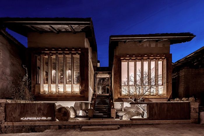 Отель Karesanui размещен в историческом районе Шангри-Ла, в трех минутах от востребованной улицы Сыфанг. Строительство было окончено 2 года назад, в общей сложности шесть зданий, сделанных в обычном архитектурном стиле. Архитекторы уделили свое внимание каждой детали. Как внутри, так и снаружи применяются только природные материалы, например дерево, камень и бетон. Для него свойственен грубый, необработанный вид, который замечательно дополняет дизайн Zen. В отеле 15 номеров, ресторан, отдельная чайная и вестибюль, оформленные в тибетском стиле с невысокой мебелью и утопленными креслами..