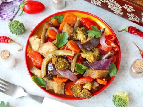 Овощное рагу с брокколи и баклажанами