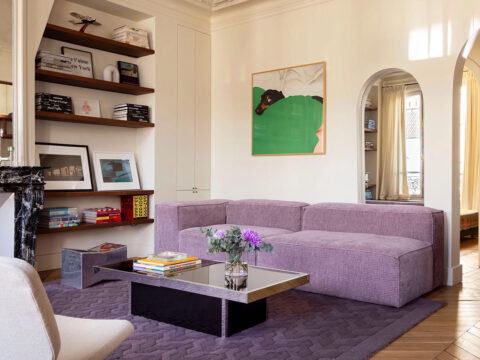 Очаровательная небольшая квартира в Париже с лиловым диваном