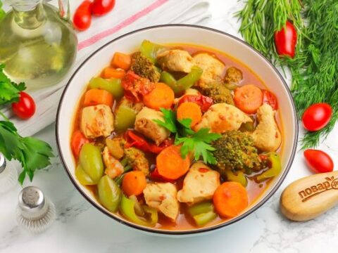 Куриная грудка, тушеная с овощами