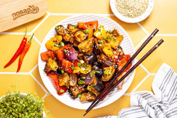 Назначение: На ужин Основной ингредиент: Овощи / Баклажан Блюдо: Горячие блюда География кухни: Китайская / Азиатская Диета: Вегетарианское питание