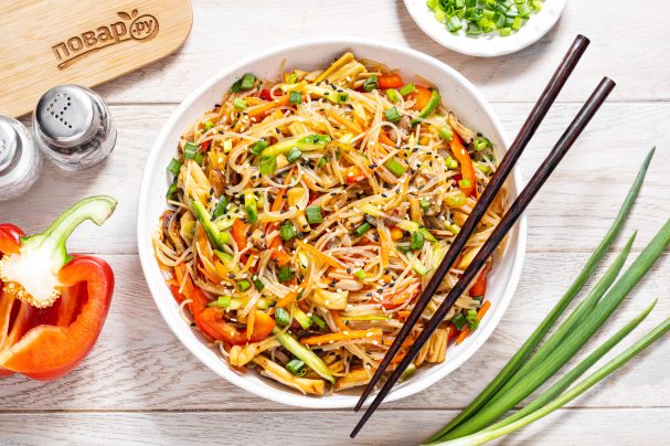 Ниже я расскажу подробнее, как приготовить фунчозу с вешенками и овощами. Из овощей также можно использовать кабачок или цукини, стручковую фасоль или спраржу, а также мини кукурузу. В заправку для сливочного вкуса можно добавить арахисовую пасту (без сахара), а из зелени использовать также кинзу и петрушку. Блюдо особенно понравится тем, кто любит азиатскую кухню.