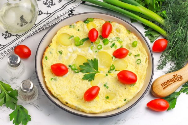 Назначение: На завтрак Основной ингредиент: Яйца Блюдо: Горячие блюда / Омлет География кухни: Испанская / Европейская