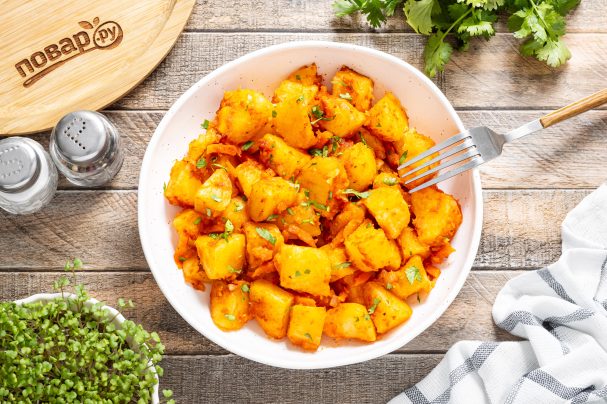 В качестве специи для картофеля можно использовать сушеный лук, чеснок, куркуму, кориандр, тмин, перец черный, перец красный чили, розмарин, тимьян, петрушку, укроп, шалфей.