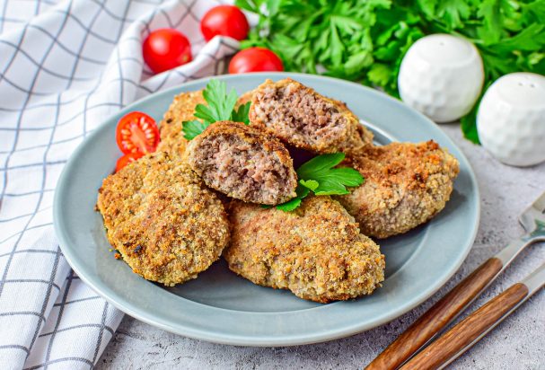 Сформируйте небольшие котлеты и обваляйте их в панировочных сухарях.