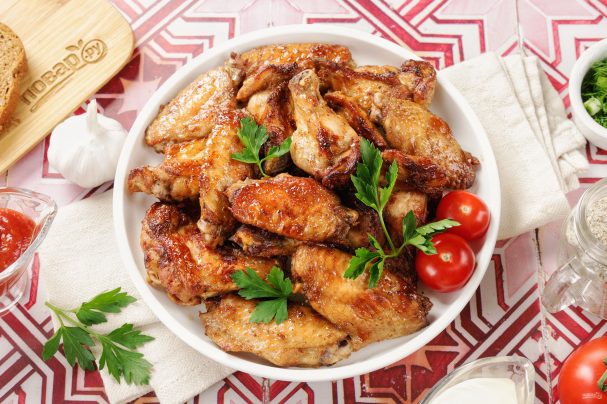 3. Подавать крылышки можно с различными соусами: барбекю, чесночным, горчицей или кетчупом.
