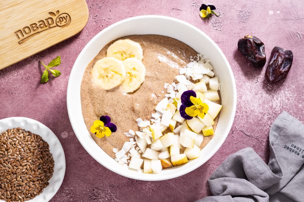 Ниже я расскажу подробнее, как приготовить льняную кашу с протеином. Банан выбирайте спелый, так каша получится слаще и ароматнее. Также можно заменить банан на фруктовое пюре или замороженные ягоды. Вместо ореховой пасты можно добавить кокосовый урбеч. Если к такой полезной каше добавить протеин, то получится идеально сбалансированное по БЖУ блюдо! Готовится каша быстро и просто, так что берите на заметку!
