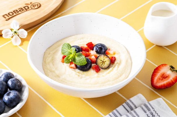 Манная каша простая готова, для подачи можно добавить свежие ягоды или фрукты. Приятного вам аппетита!