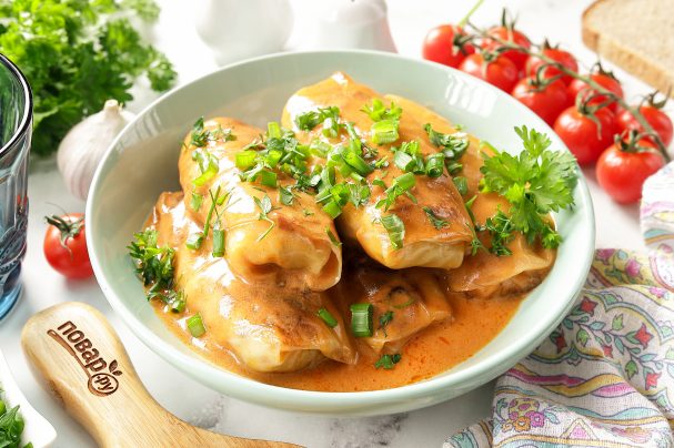 Подавать голубцы можно самостоятельно с соусом, в котором они тушились или с любым гарниром. Идеально подойдёт картофельное пюре.