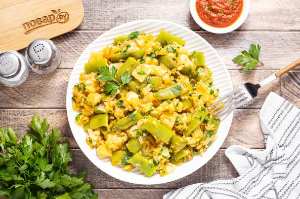 Зеленую стручковую фасоль отварите на пару 5-6 минут.