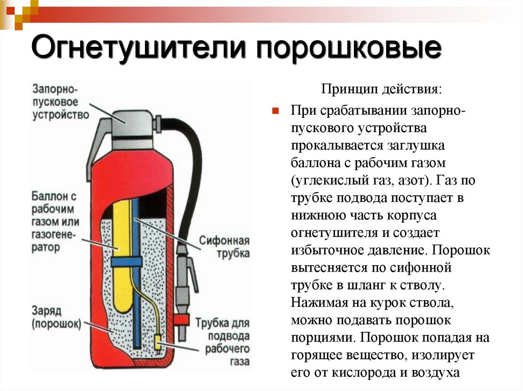 Порошковые огнетушители легки в использовании и не требуют специальных навыков или обучения для их применения. Это позволяет быстро и эффективно реагировать на пожарные ситуации и обеспечивать безопасность как для себя, так и для окружающих.