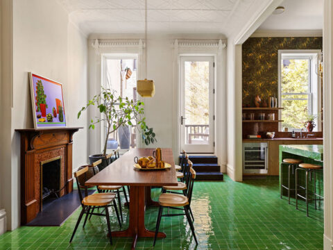 Зелёная плитка и другие яркие акценты в дизайне таунхауса в Бруклине