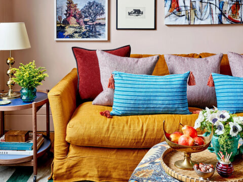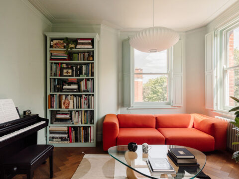 Мятные стены, желтая кухня и рыжий диван: современный интерьер в старом доме в Лондоне