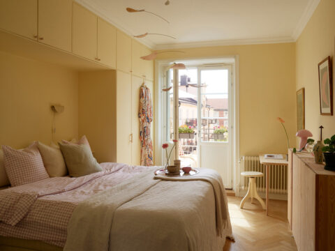 Шведская квартира с пастельными спальнями и видами на залив (54 кв. м)