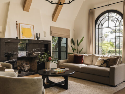 Чёрный камин и природные оттенки: новый интерьер дома в стиле Тюдор в Калифорнии