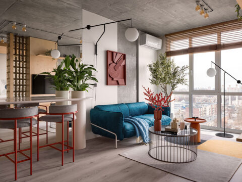 Украинская студия DIHOME наполнила современную квартиру с бетонными перекрытиями оригинальными яркими деталями и акцентами в…